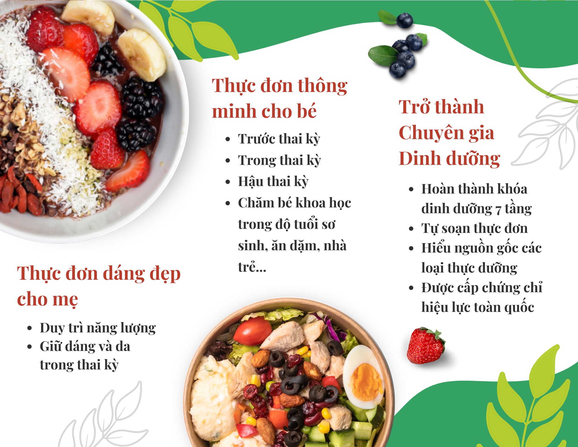 Miễn phí trọn bộ Cẩm nang dinh dưỡng và Khoá học 7 tầng với sự hướng dẫn của giáo viên chuyên nghiệp, có chứng nhận cấp quốc gia để duy trì sức khoẻ tối ưu cho cả mẹ và bé.