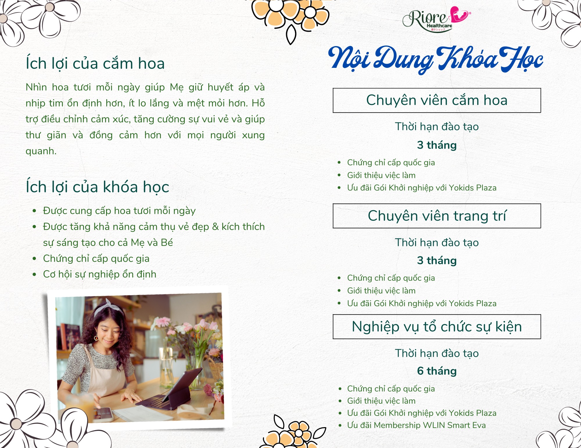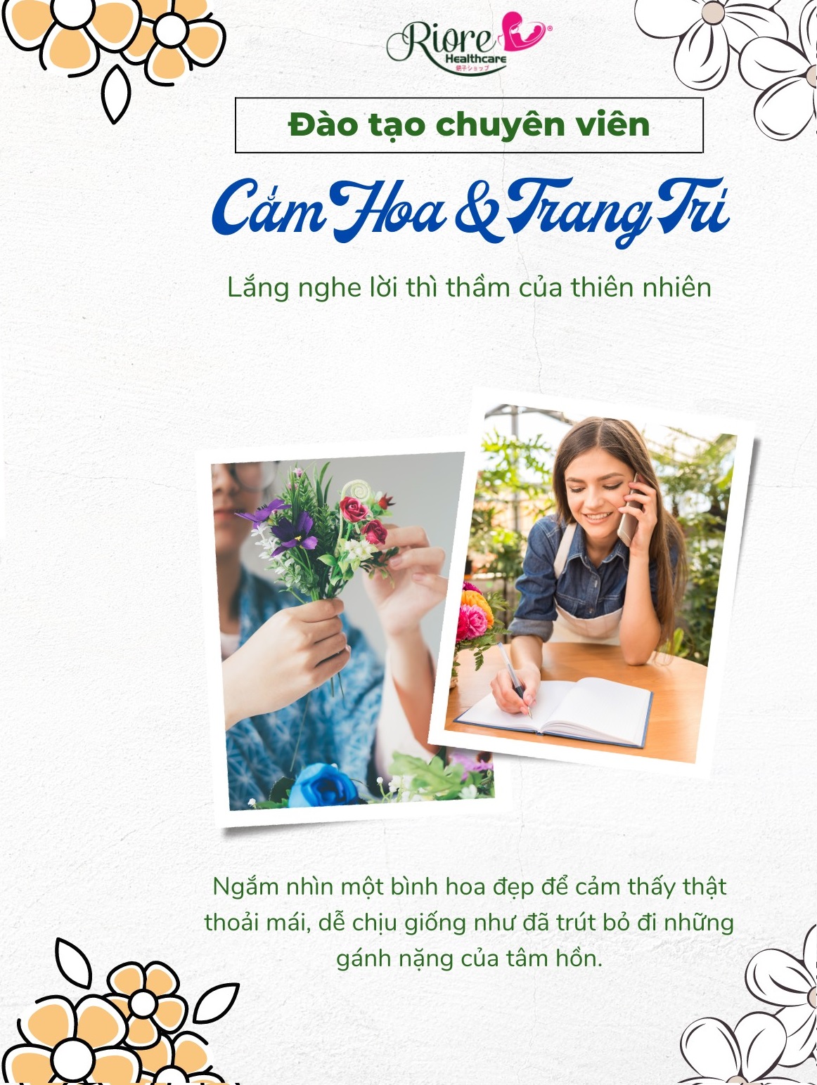 Làm thế nào chúng ta có thể biến những đóa hoa nở rộ tinh tế thành những tác phẩm nghệ thuật trang trí, điểm nhấn trong không gian sống của mỗi người? Hãy cùng Riore Healthcare bắt đầu cuộc hành trình trở thành chuyên viên cắm hoa, nơi mà niềm đam mê, sự sáng tạo và tình yêu thương đều hòa mình vào một không gian đẹp đẽ, mỗi bông hoa không chỉ là một vật trang trí mà còn là linh hồn của một câu chuyện, mang lại sự thoải mái và dễ chịu cho tâm hồn hòa mình vào một bản giao hưởng tuyệt vời của sắc thái và tình cảm. Những đóa hoa không chỉ là nguồn cảm hứng, mà còn là điểm nhấn lãng mạn trong cuộc sống hàng ngày, làm cho mỗi khoảnh khắc trở nên đẹp đẽ và ý nghĩa hơn.