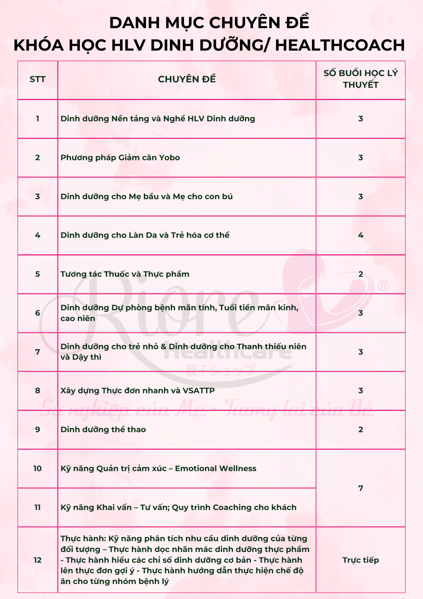 Khóa học Health Coach tại Riore Healthcare cung cấp lộ trình đào tạo rõ ràng, giúp học viên nhanh chóng nắm bắt kiến thức và thực hành hiệu quả. Những lợi ích nổi bật của khóa học bao gồm: